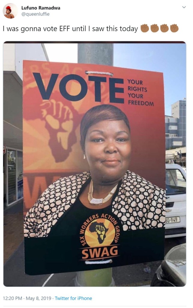 On day fifteen, this piece from Ishtar Lakhani outlines how she, and SWEAT, an advocate group for the health & human rights of sex workers and the Decriminalisation of Sex Work in South Africa, used politics to bring sex worker issues to the public stage, by running for president.